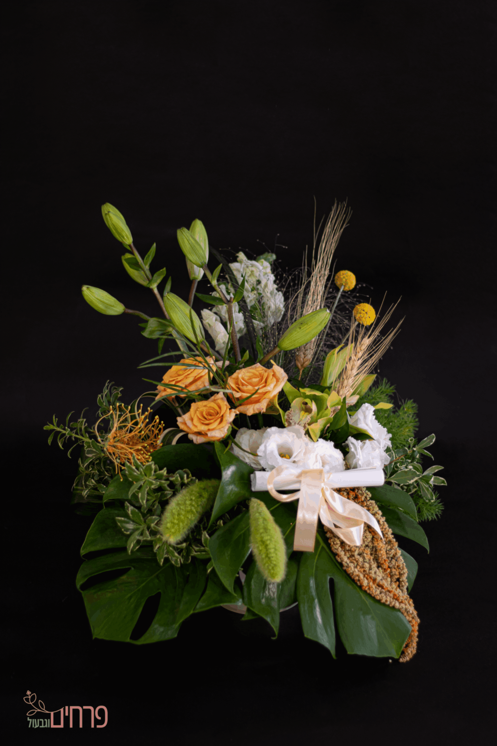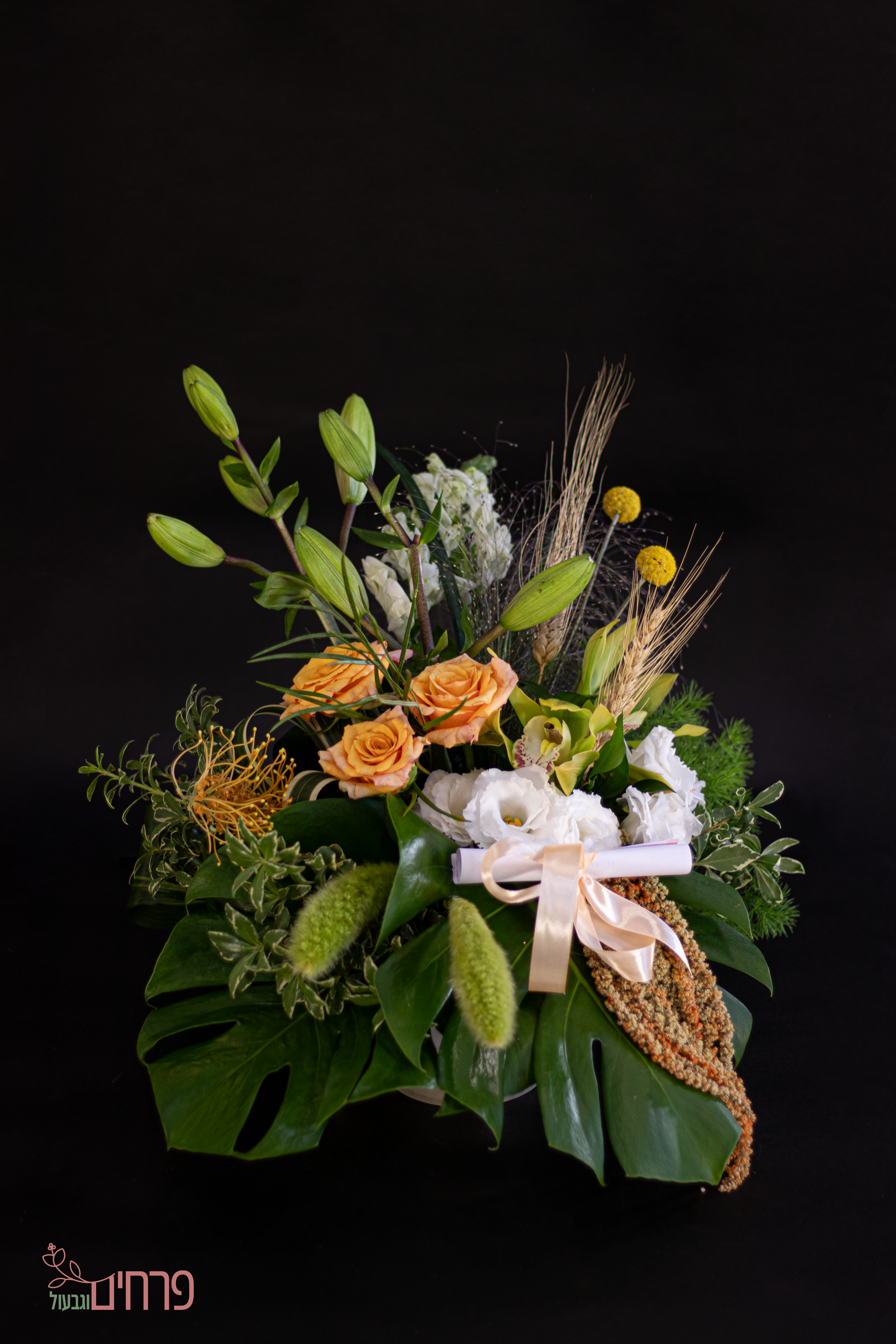 • טול סרט גדול מקדימה וזר גיבסניות